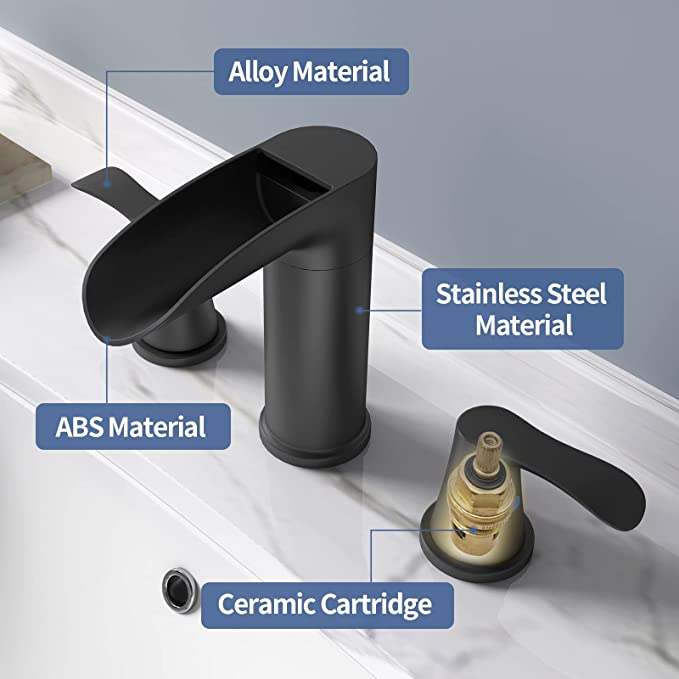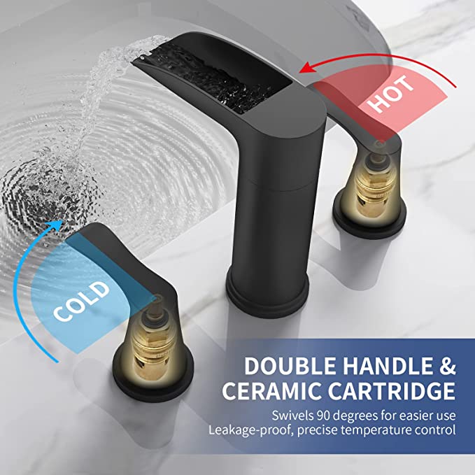 | Special Feature | Waterfall Spout, 360° Rotating Spout, Dual Handle Temperature Control, High Quality Material, 3-Hole Quick Mount |