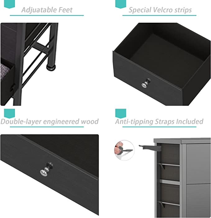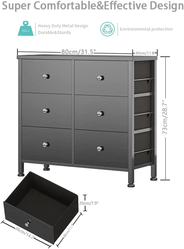 | Special Feature | ▶6 Fabric Drawers with wood Front, ▶Wood Handles, ▶Wooden Top Board, ▶Adjustable Feet 2.1"-2.4" |
