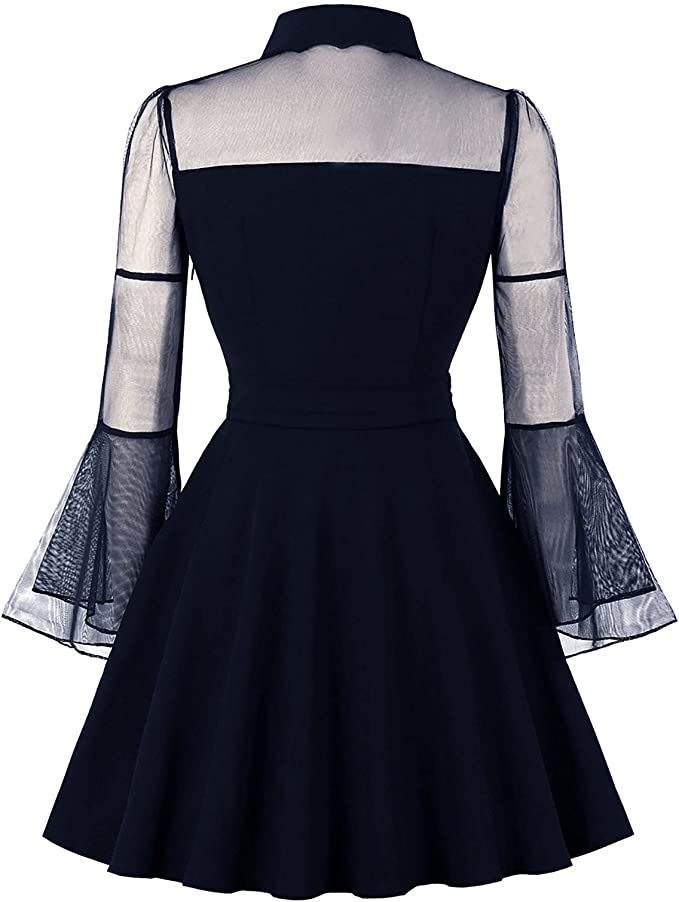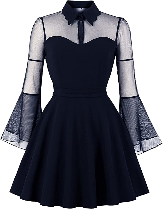 Women Halloween Gothic Long Sleeve Solid Color Punk Vintage Party Dress