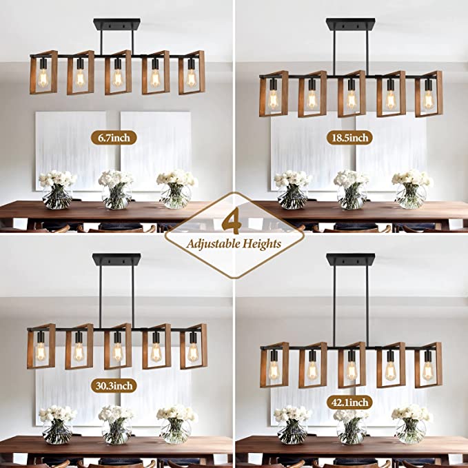 | Special Feature | ?5-Light Farmhouse Wood Chandeliers?Anti-corrosion Black Metal Finish with Wood Frameworks?Adjustable 5 Wood Boxes To DIY Your Own Dining Lights?Dimmable With Compatible Dimmer Switch&Compatible E26 Bulbs |
