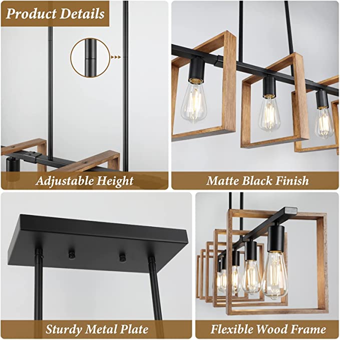 | Special Features | ?5-Light Farmhouse Wood Chandeliers?Anti-corrosion Black Metal Finish with Wood Frameworks?Adjustable 5 Wood Boxes To DIY Your Own Dining Lights?Dimmable With Compatible Dimmer Switch&Compatible E26 Bulbs |