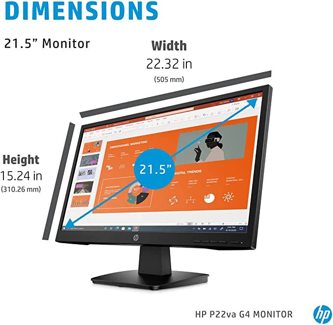 HP P22va G4 21.5 inch 1080P Computer Monitor, Full HD Anti-Glare VA Display, 3000:1 Contrast Ratio, HDMI, VGA, VESA Mount, Low Blue Light Mode, Ideal for Home and Business, Black (2022 Latest