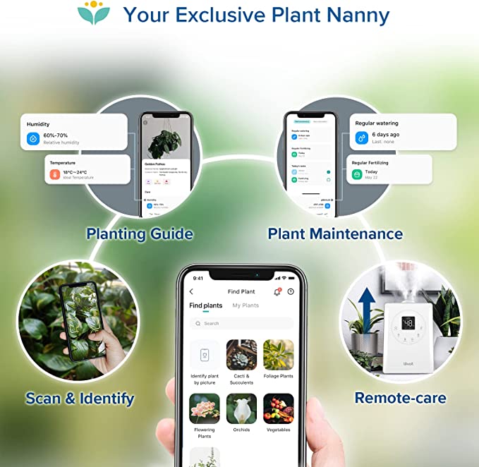 | Included Components | 1 x Smart Ultrasonic Humidifier 1 x Cleaning Brush 3 x Aroma Pads (1 pre-installed) 3 x Absorption Pads (1 pre-installed) 2 x Water Filter Sponge (1 pre-installed) 1 x User Manual 1 x Quick Start Guide |