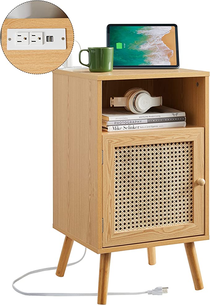 | Special Feature | End table, Rattan Nightstand, Easy Assembly, Charging Station |