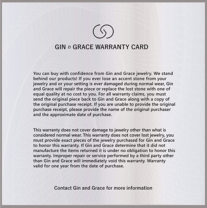 EASY CLEAN: Gin & Grace jewelry are made up to last forever; however, be sure to take proper care of your jewelry. To clean this piece, use warm water, a mild soap, and a soft bristled brush if needed. Avoid contact with chlorine and other harsh chemicals to keep it forever shining.