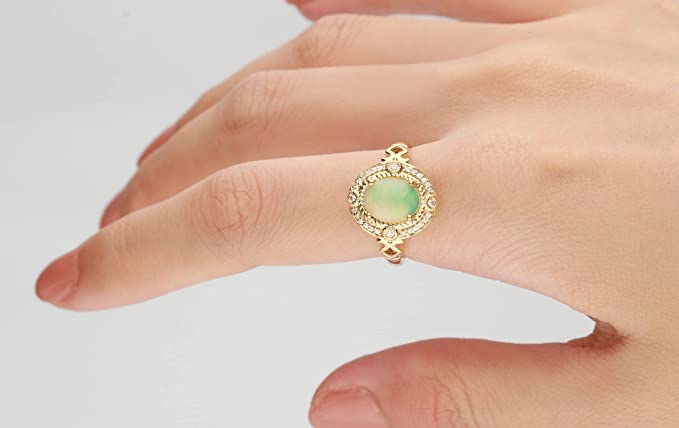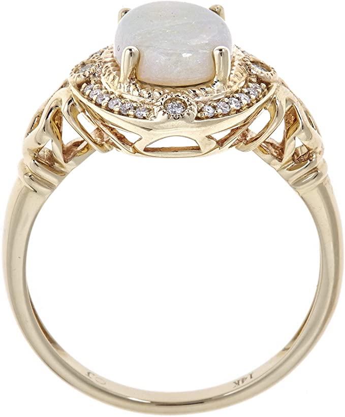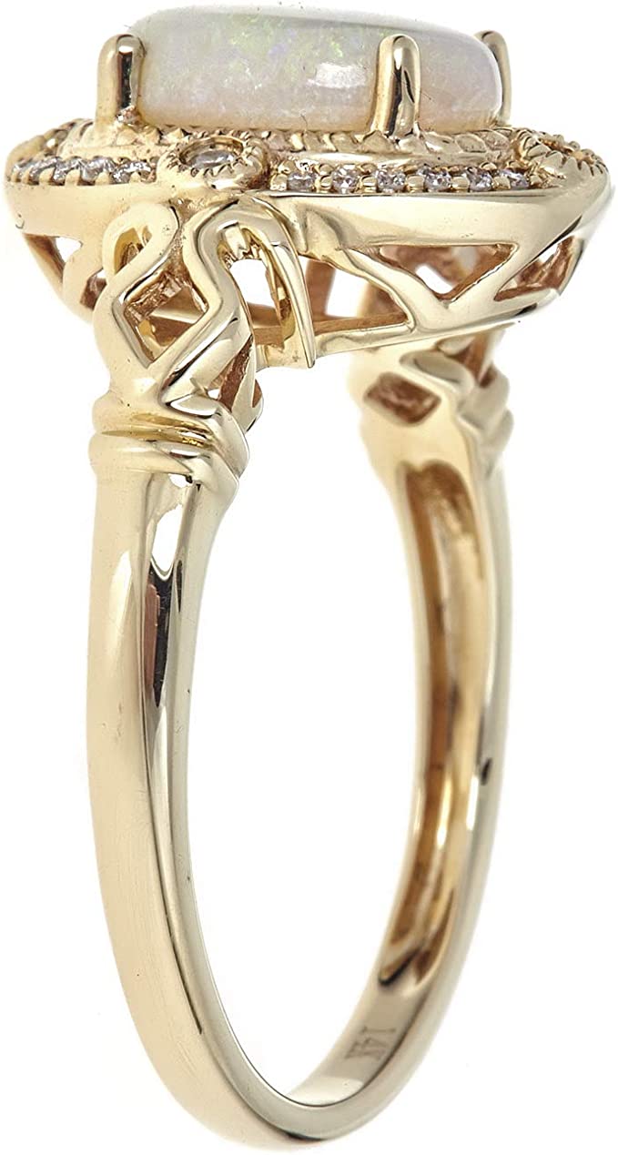 Gin & Grace 14K Yellow Gold Natural Ethiopian Opal Ring with Real Diamonds for women | Ethically, authentically & organically sourced (Oval) shaped opal hand-crafted jewelry for her | Opal Ri
