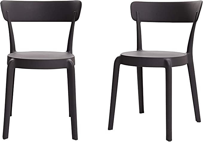 Basics Dark Grey, Armless Bistro Dining Chair-Set of 2, Premium Plastic