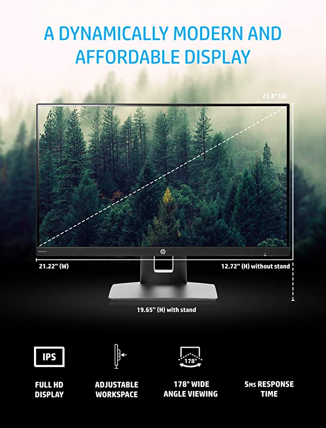 HP VH240a 23.8-Inch Full HD 1080p IPS LED Monitor with Built-In Speakers and VESA Mounting, Rotating Portrait & Landscape, Tilt, and HDMI & VGA Ports (1KL30AA) - Black