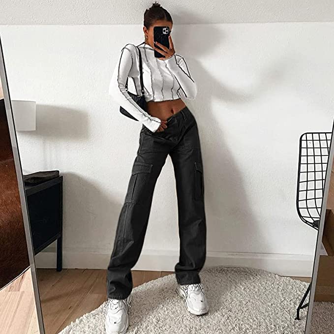 Match: This cargo pants with smooth contour and beautiful appearance, basic style which is bloggers favorite, perfect for your everyday essentials collection in your closet. These cool girl style pants can be paired with Crop Tops, T-shirts, sweaters, cardigans and jackets for spring, summer, fall and winter.