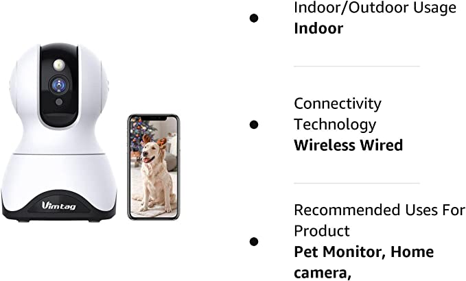 VIMTAG Pet Camera, 2.5K HD Pet Cam,360° Pan/Tilt View Angel with Two Way Audio, Dog Camera with Phone APP, Motion Tracking Alarm,Night Vision,24/7 Recording with Cloud/Local SD, Smart Home In