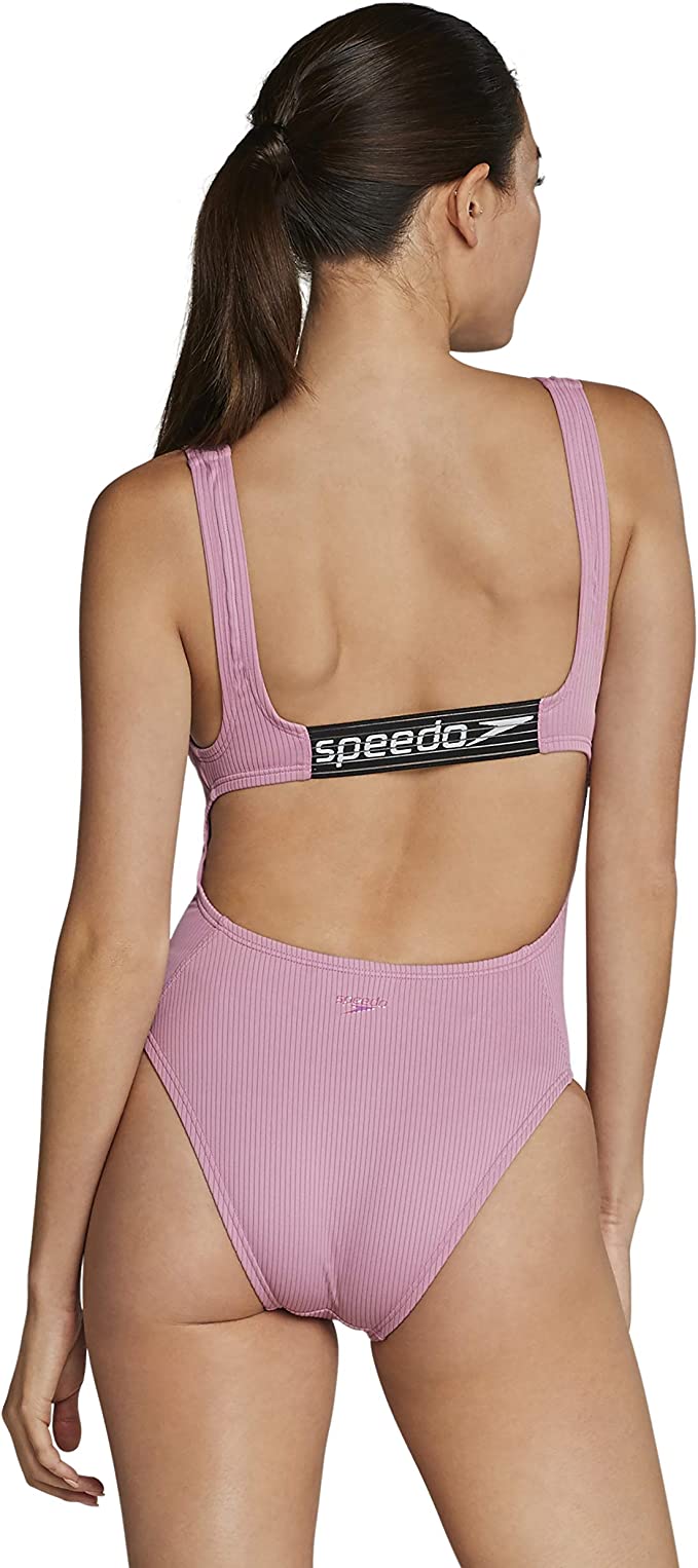 Speedo Women's Swimsuit One Piece Logo Back Strap Contemporary Cut