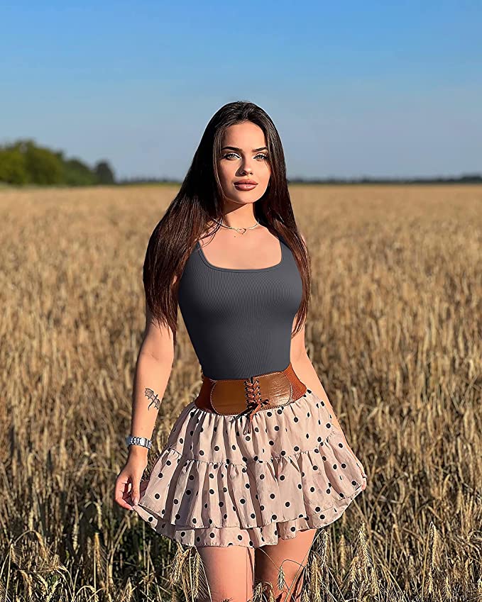 Sexy Square Neck Tank Tops Bodysuits, flattering square neckline,wide set straps,sleeveless,tummy control simple in design,don’t see through, Best womens, ladies and teen girl clothes.