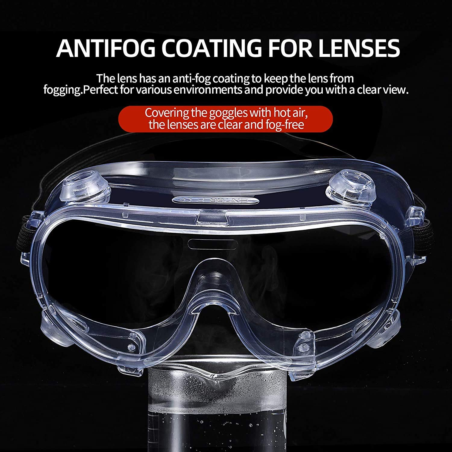 Ventilation: these safety goggles have 4 white indirect ventilation holes for maximum air flow and good ventilation.