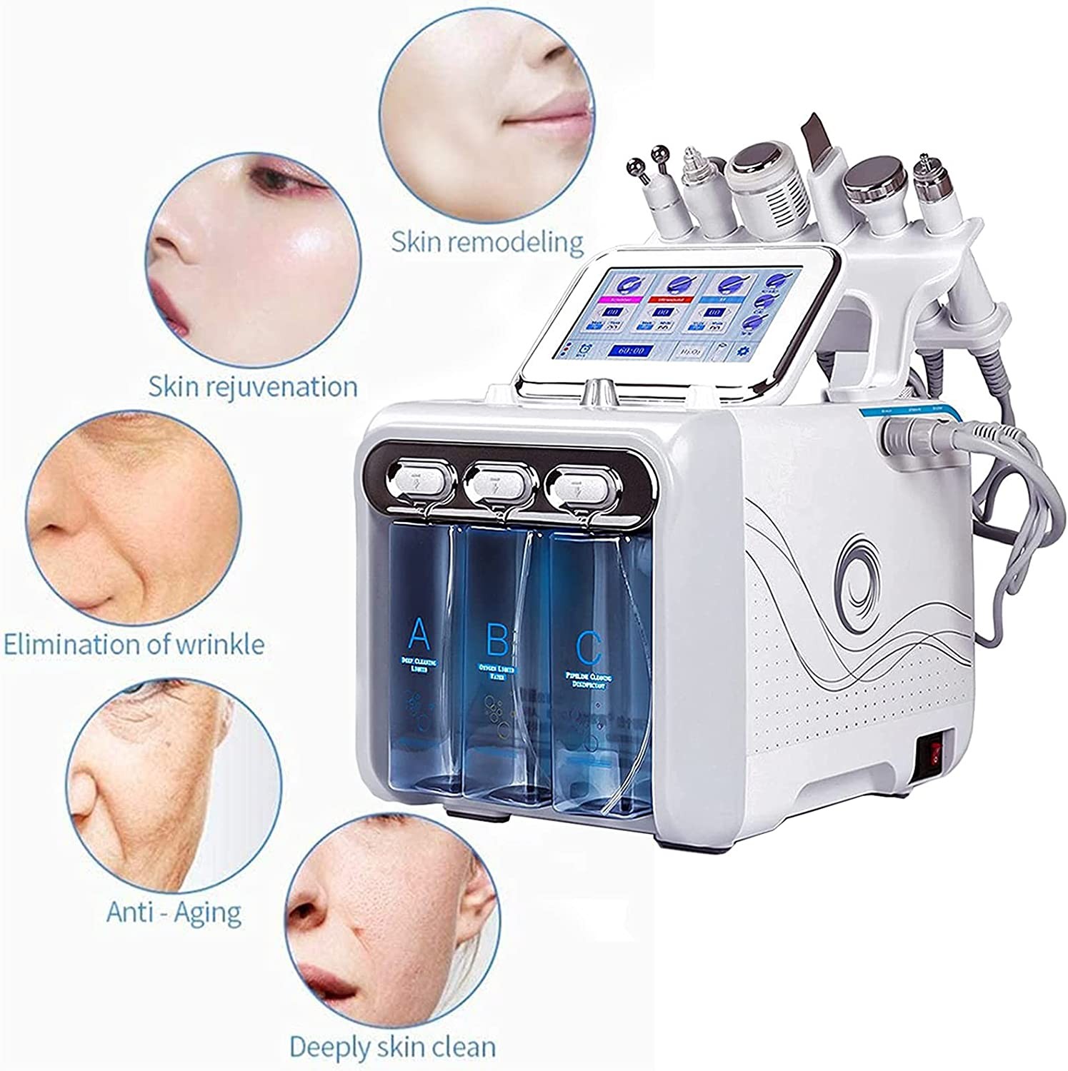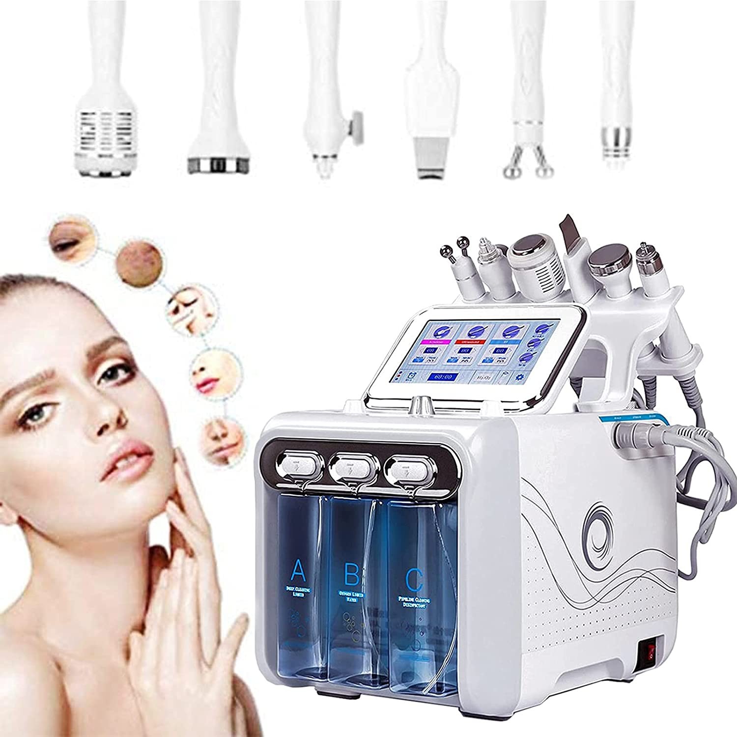 Multieffect effectiveness: 6 in 1 hydrogen and oxygen cosmetic apparatus have a multifaceted effect on facial skin care, remove skin contamination; Narrow down the pores; Tighten the skin and reduce wrinkles; Improves skin elasticity; Help rejuvenate the skin.
