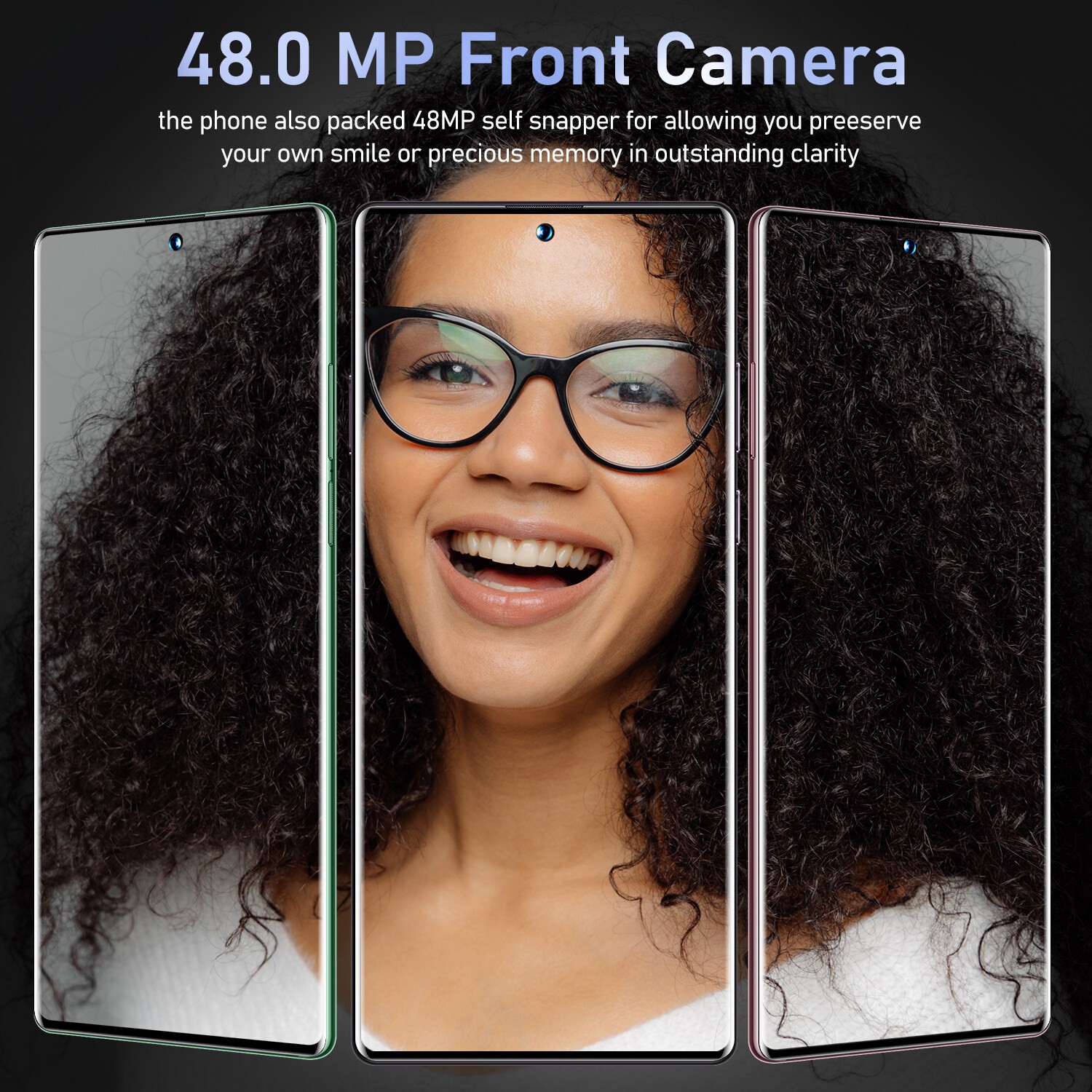 Front camera 48MP, f/2.0 aperture, fixed focal length