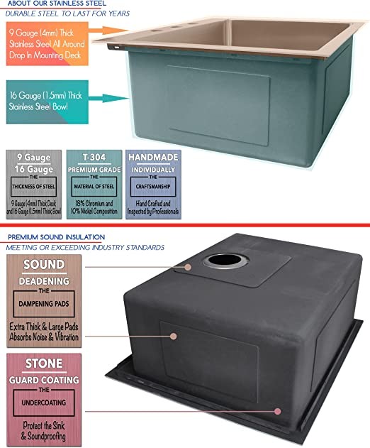 [Quiet Sink] Each sink is manufactured with an excellent sound-deadening system that absorbs and reduces the noise made by garbage disposal and running water.