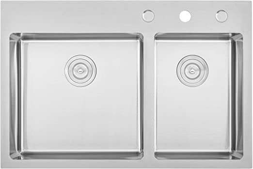 [Double Bowls Design] Double bowls make functional zone more reasonable. One bowl can be used to brush pots, wash rags and other dirty jobs, while the other bowl is used to wash dished, vegetables and fruits. The 15 mm radius corner around the sink makes it easier to clean. More hygienic and healthier.