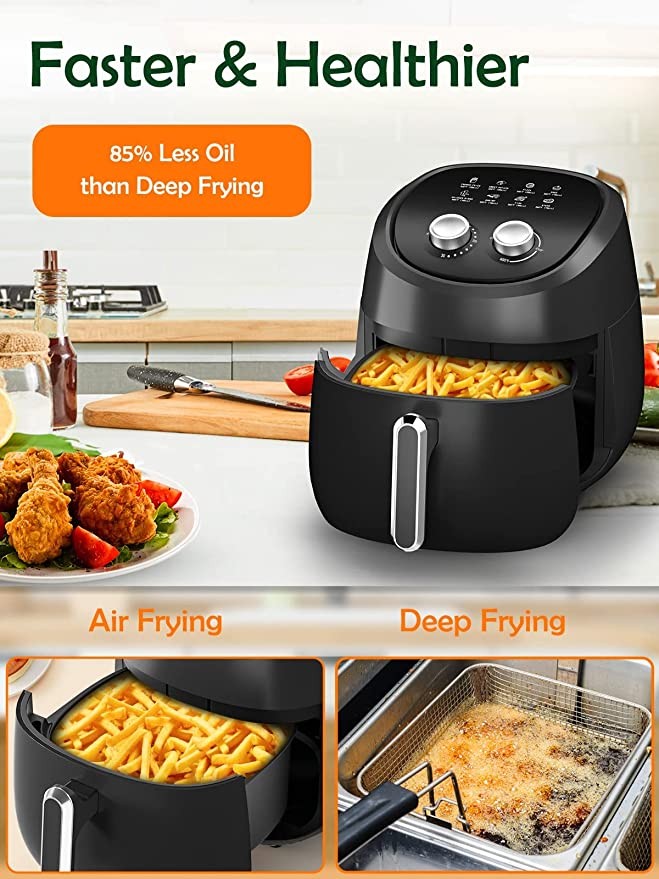 ENJOY HEALTHIER FOOD: Healthy Meal with Upgrade Air Fryer Cookers. The Compact Air Fryer is a Healthier Alternative to Deep-frying. Enjoy Low-fat Fried Foods with at Least 85% Less Oil by Allcool Air Fryers Comparing to Traditional Deep Fryers. Airfryer Oven Reduces Calories in Your Food With Original Taste. Don't Worry About All the Extra Cholesterol in Your Food with Our Best Air Fryer.