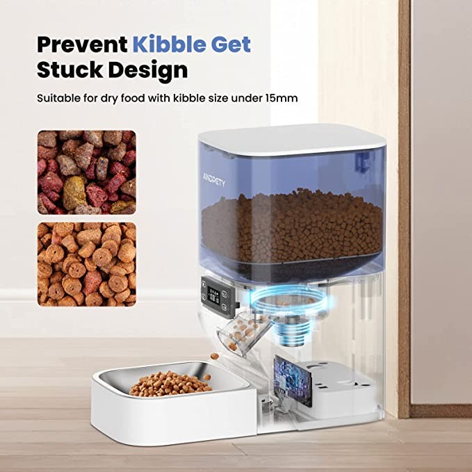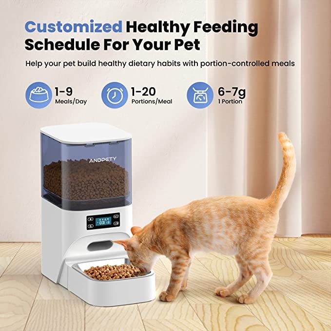 ?【Cat Feeder with "0" Learning Cost】Using Andpet automatic cat feeder with the inbuilt LCD screen, you can easily arrange a healthy feeding program for your pet: 1-9 meals per day, up to 20 servings per meal (0.5 oz per serving). *Our user manual can ensure all customers to understand to the great extent, the setting is not difficult. Just please follow it step by step. If any more question, please free to contact us by Amazon message. We provide comprehensive and careful after-sales service.