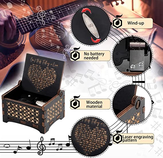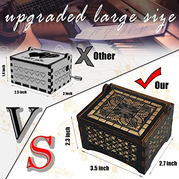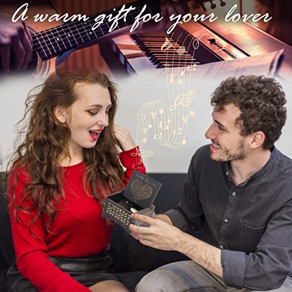 ♬ Well-made & Large Size - This anniversary gift music box for her is made of natural high-quality wood and high-precision music modules, sturdy and durable. When you twist the spring on the bottom, you'll hear a recognizable song in great sound quality. The size of the music box is about 2.3 inches × 2.7 inches × 3.5 inches (5.8 cm × 6.8 cm × 8.9 cm), which has been updated to a large size. The portable design makes it easy to fit in the palm of your hand to surprise your partner this holiday season