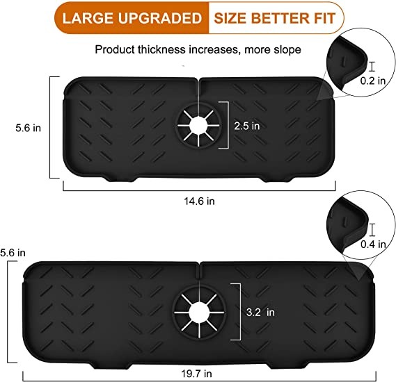 【Foldable &Longer】Newest kitchen faucet mat is made of nice soft safer food grade BPA-free silicone. It has a fold line in the back to accommodate faucets which are close to the wall, flexible and durable. Faucet handle drip catcher mat is thicker and longer than other mats. You can choose the color you prefer: grey or black to fit your countertop.