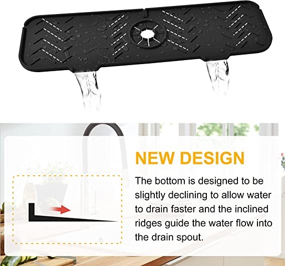 【Wide Application】The kitchen counter mat easily fit around the base of your kitchen sink, bathroom, farmhouse,RV or restroom to keep clean and dry. You can also put a cleaning brush, soap, sponge, soap, and mouthwash cup on this mat, perfect sink accessories.