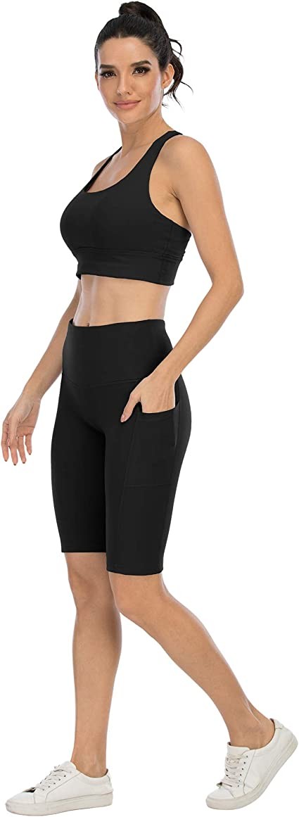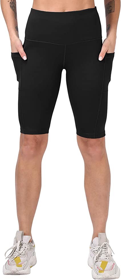 CHRLEISURE High Waisted Yoga Shorts With Pockets for Women, Workout Spandex Running Shorts