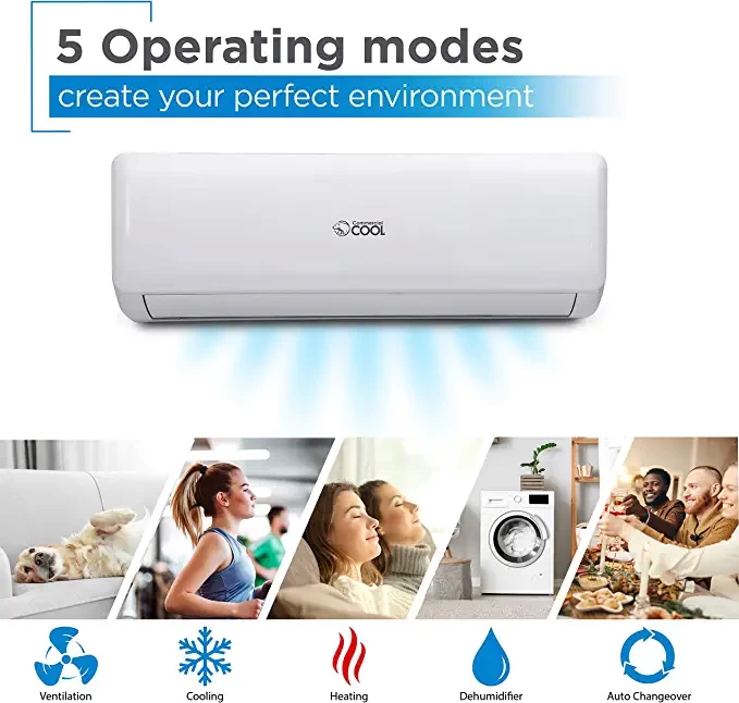 Quiet and powerful: our 18,000 btu air conditioners for cooling, 17 seer and 19,000 bte for heating, as well as 9 room HSPF air conditioners for separate rooms, are the ideal solution for controlling air temperature. This mini alternating current/heating system provides cool and comfort in summer and heat in winter. The ifeel function allows you to set the room temperature according to the location of the remote control, the temperature ranging from 60 to 90 degrees Fahrenheit for four seasons, and the silence is 45/52.6 decibel.