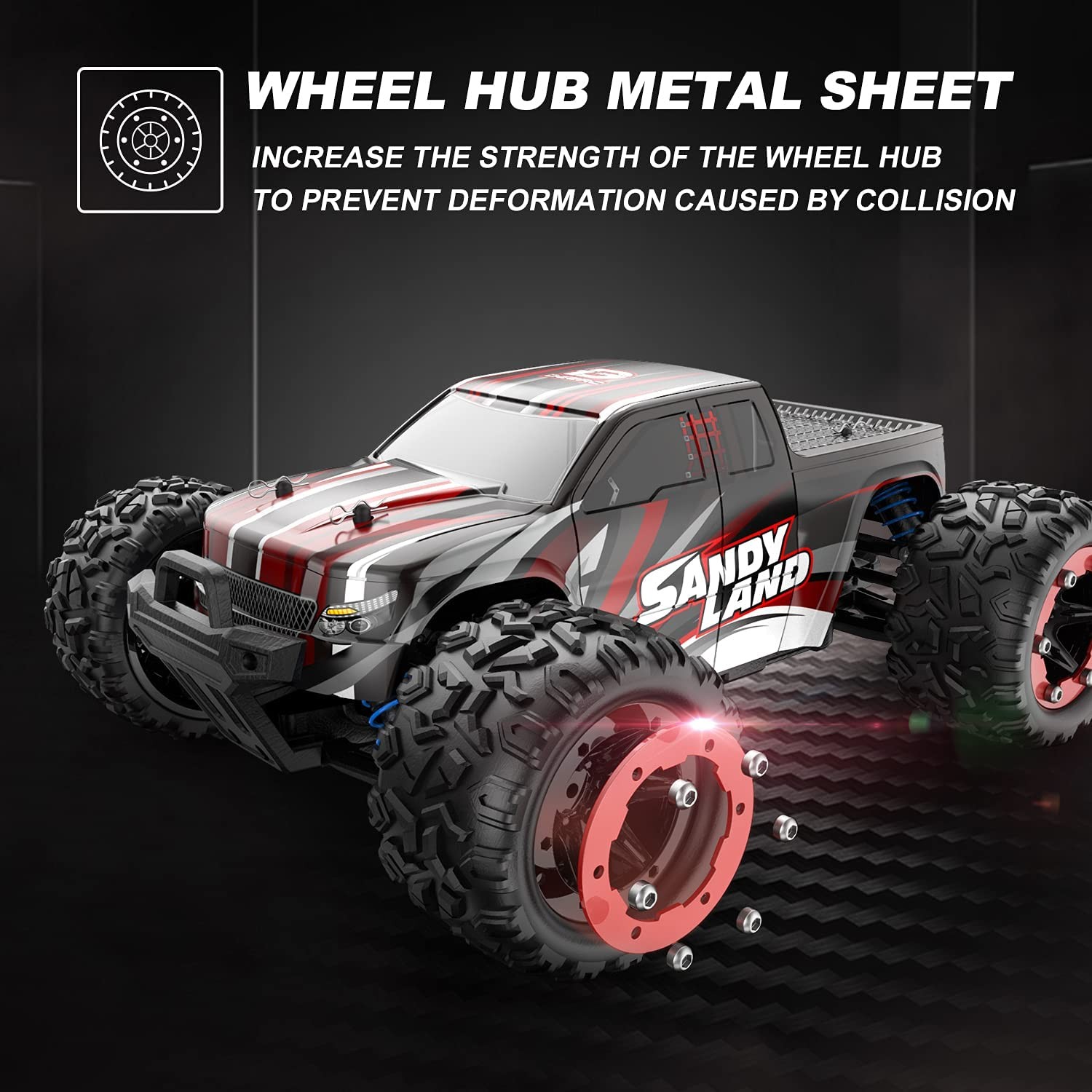 Moter with Professional Metal Heat Sink: The monster truck is equipped with a 380 motor that can perform 21500 revs per minute, which made a huge enhancement for the acceleration and allows the RC car to have a top speed of 40+ km/h. There is a metal heat sink that fully covers the motor to enhance motor heat dissipation so as to extend motor life. Please note that the motor gets heated when the truck has been driven for a long time. We recommend you pause intermittently after 15 mins driving.