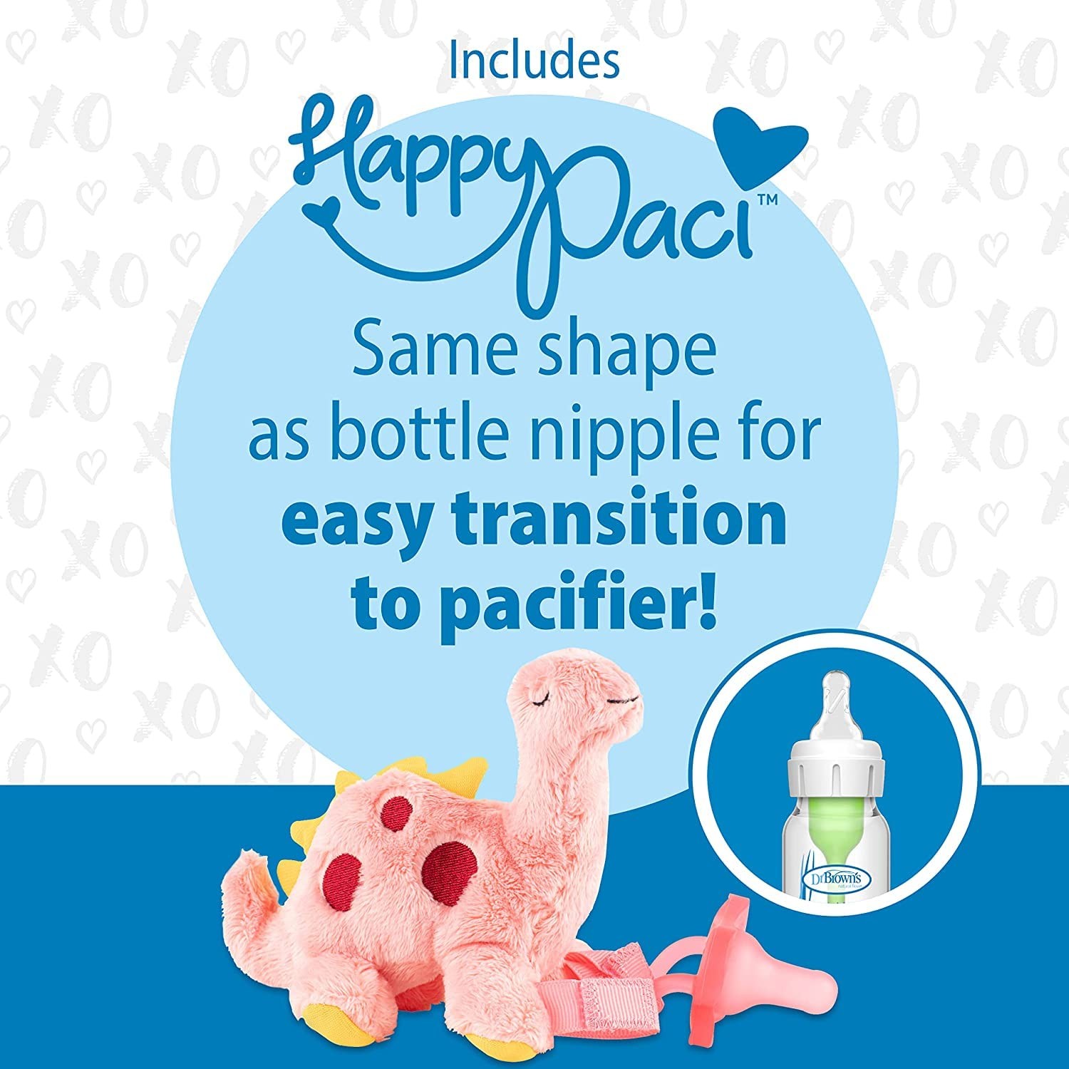 BABY PACIFIER HOLDER. Designed to keep baby’s binkies and teethers close by, Lovey holds any Dr. Brown’s pacifiers and teethers and most other brands. THE PACIFIER BABIES LOVE. Included Dr. Brown’s HappyPaci pacifier is 100% silicone with a contoured shield.