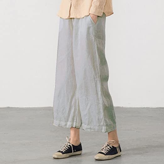 Thanks to the clamp and elastic waist, it is very easy to wear and remove. Free style, daily size plus makes it the most suitable. Solid colors can be easily combined with t-shirts or shirts. Cotton shortened wide straight trousers with pockets for women, ideal for spring and summer.