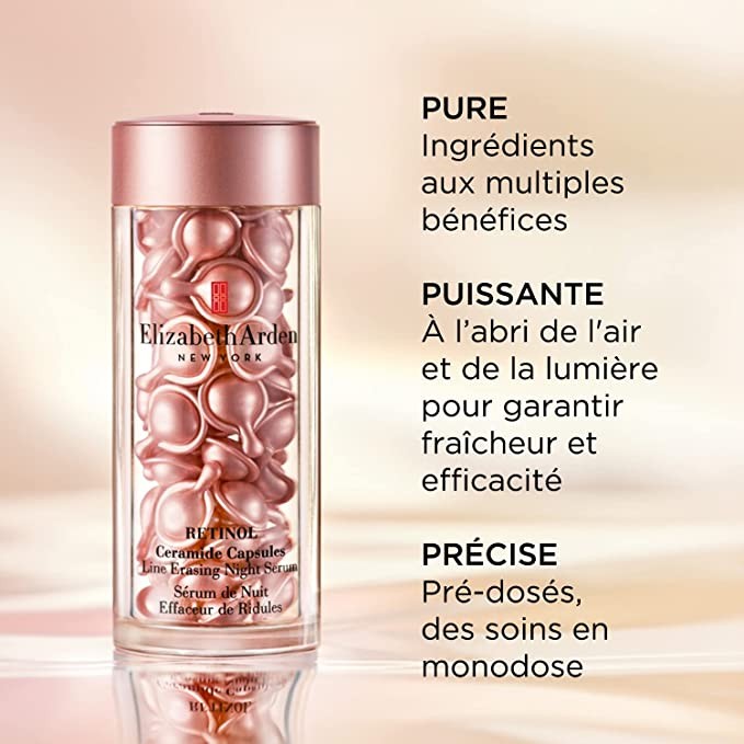 Visibly smoothes fine lines and improves skin texture, tone and clarity with Retinol Ceramide Capsules