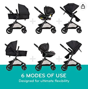Versatility and lightness: this combination of car seats and prams has a modular frame with 6 modes. Reverse mode allows your child to turn his/her face inwards or outwards, while the stroller can easily switch from the child car seat to the stroller seat or stroller mode.