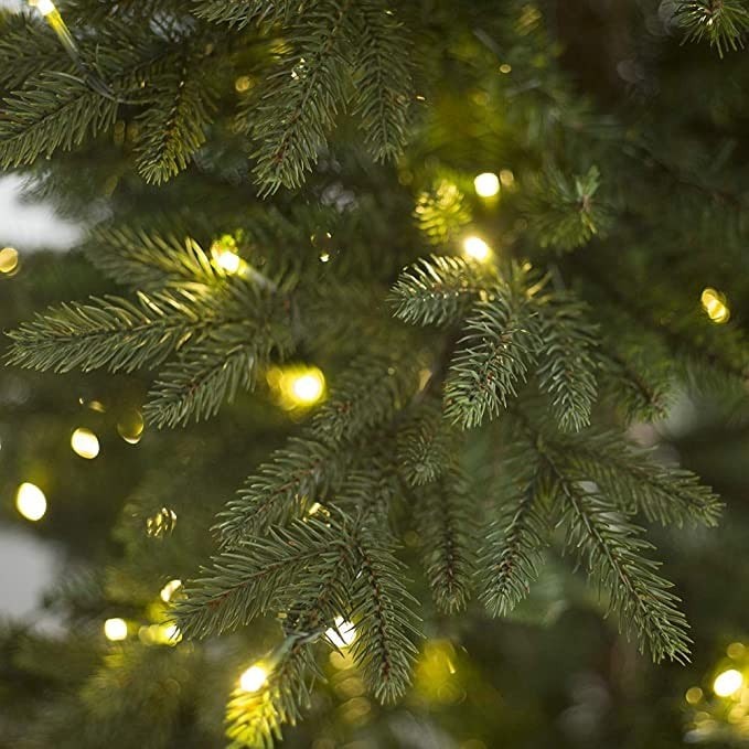 人造圣诞树,松树/冷杉,高 180 厘米,直径 130 厘米,带 300 个暖白光 LED 和金属支架