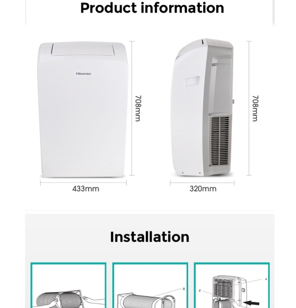 Product details of (Free Shipping) Hisense 1.5HP R32 Portable Air Conditioner AP12NXG