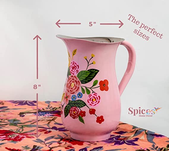 EACH WIDE PITCHER IS UNIQUE - They are individually hand painted in India by our dedicated Kashmiri artisans. You can use it as a bedside night carafe or as a beautiful flower vase and even a watering can.
