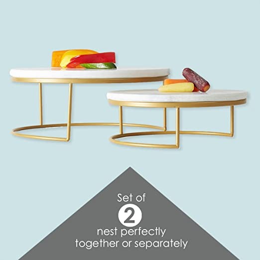 Home Basics Marble Food Display Riser, White | Ideal for Entertaining | Space Saver | Makes a Great Gift | Showcase Food or Decorations (2 Piece Round)