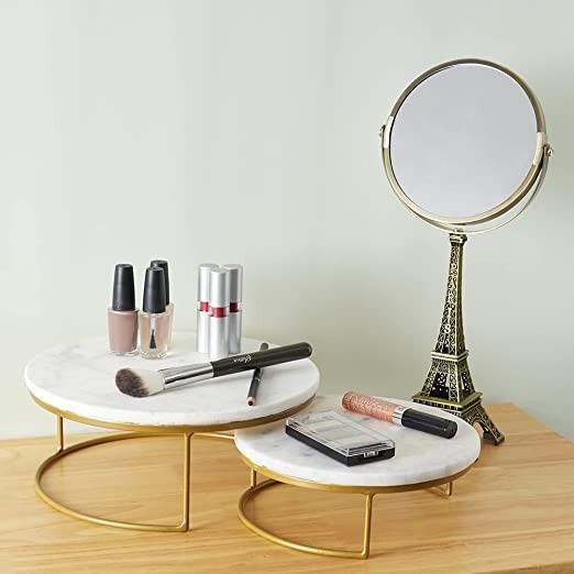 • ALTERNATIVE USE: Use this riser not only for food, but it is also great to go on a vanity or dresser to store makeup and jewelry. Or it can function as a table riser of convenience for your eyewear and keys.