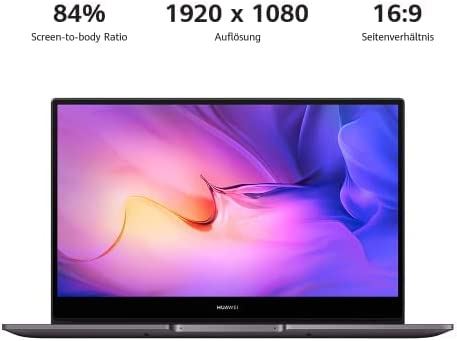 Huawei matebook d 14 is equipped with a 14-inch high resolution display (1920 x 1080) and a 256-gb hard drive pcie SSD, German layout qwertz, screen to case ratio of 84%.