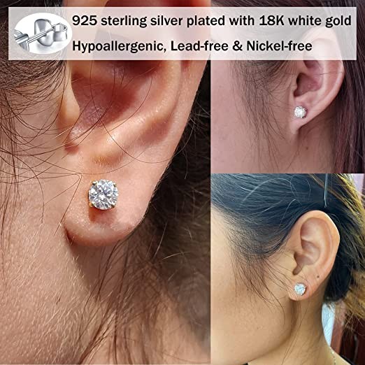 【Safety of Materials】-The earrings for sensitive ears are made with 925 Sterling Silver and 18K white gold plated, which is 100% Hypoallergenic, Lead-free & Nickel-free.These earrings will not turn your skin green, red or itchy.