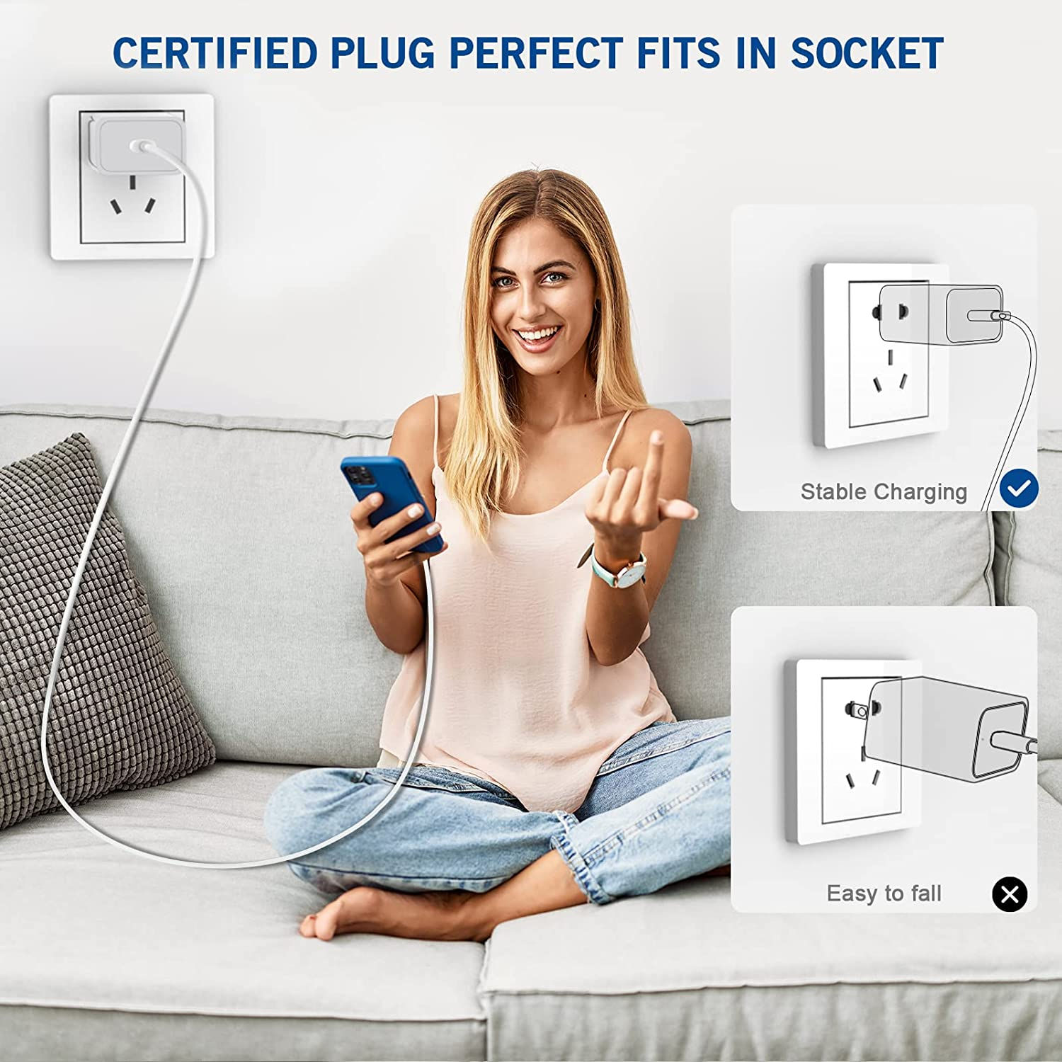 Safe to charge, certified ul fast charger iphone with built-in protective mechanism that intellectually protects your iphone/tablet/ipad/airpods from overheating, recharging, overcharging and overloading.