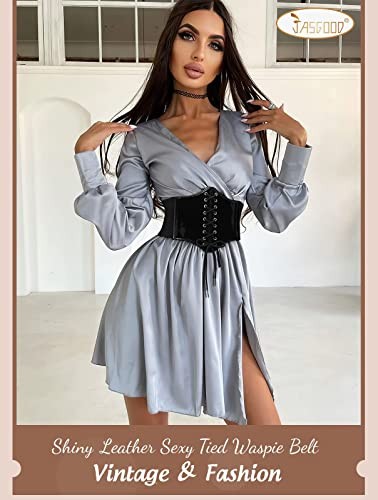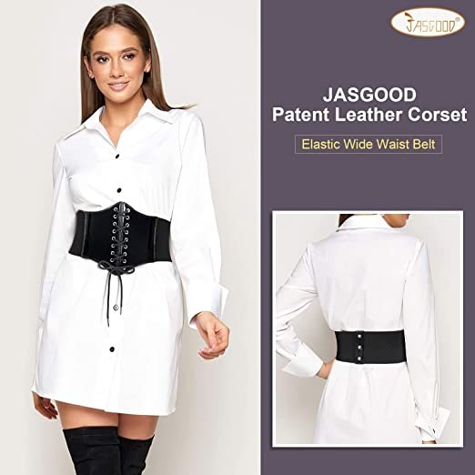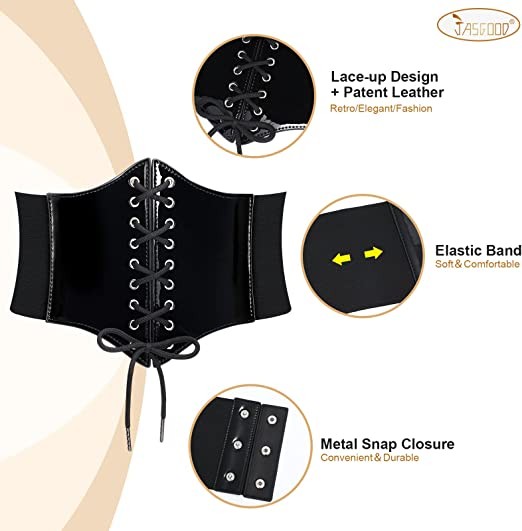 ❀ Vintage Lace-up Design + Upgraded Patent Leather - This classic style patent leather lace-up wasp belt is a perfect accessory to match with any outfit, with a unique design and stylish look. It will shape your waist nicely, make you attract more attention in the crowd. Front: Lace-up design. Back: snap closure -- easy to take on and off.