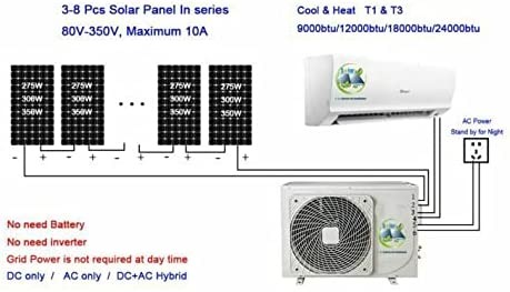 JNTECH 24000BTU Solar ACDC Inverter Ductless Mini Split Air Conditioner & Heater