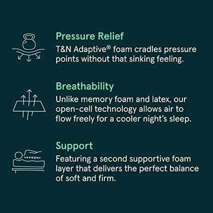 HIGH-QUALITY INNOVATIVE FOAM: Our open-cell Adaptive foam technology sleeps cooler and is more supportive than outdated materials such as memory foam and latex. With the cushy comfort and support you need, it’s the perfect balance of soft and firm.
