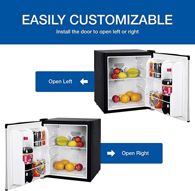 Adjustable inside and out: Simply open the mounting door left or right, place the detachable wire rack where it best suits your needs, and easily customize this mini fridge.