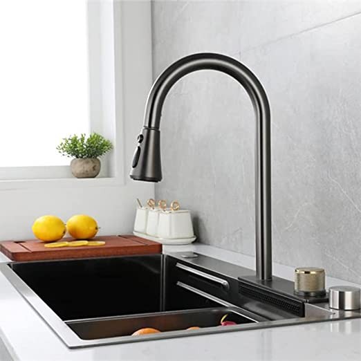 High-quality pull-out faucet with multiple water modes makes cleaning dishes a breeze.
