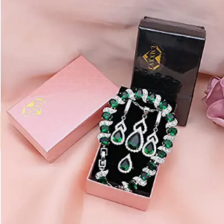 Material of high quality: this women's jewelry set is covered with white gold, the central stone - green emerald, and the side stone - white cubic zirconium. High polishing. High polishing. No nickel, hypoallergenic, constant shine. Won't change color, healthy and environmentally friendly.