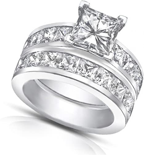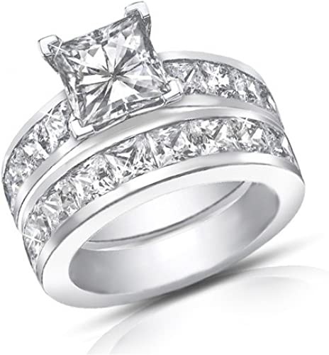 Madina Jewelry 4.50 Ct Princess Cut Diamond Engagement Ring Set in Channel Setting in 14 kt White Gold