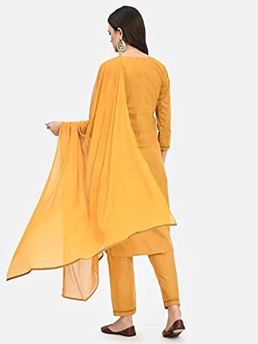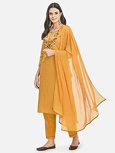 silk Imported Pull On closure Hand Wash Only Work: Thread Fabric : Silk Fit Type: Regular Length of kurti-42 ”inch, Pant- Cotton- Length-39 ” inch. Parrot Green Silk Ethnic Set Contrast color dupatta Package : 1 Kurti with one pant and dupatta For casual wear , office wear, outing, gatherings , small functions etc. Size : S,M,L,XL,XXL