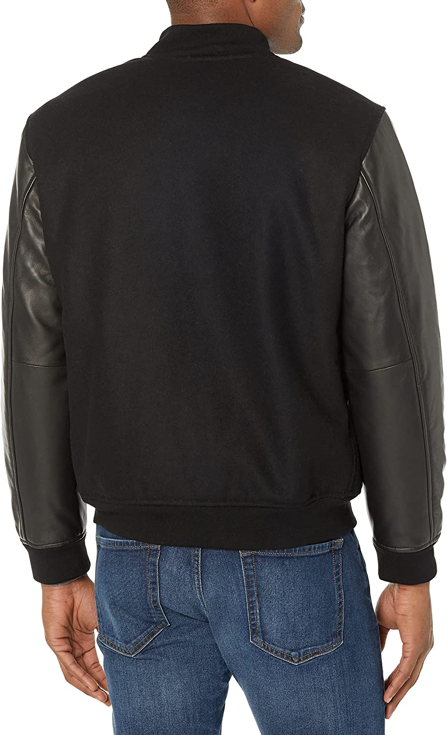 Renew your skin with this elegant jacket with contrasting leather sleeves.